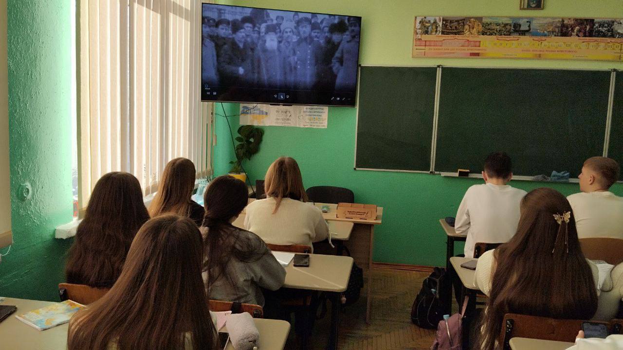 Особливий емоційний відгук викликав перегляд фрагменту фільму «Крути». Після нього учні обговорили не лише загальну стратегію, а й долі конкретних героїв — молодих хлопців, чиї мрії обірвалися на засніженому полі під Крутами, але чия відвага стала символом незламності.