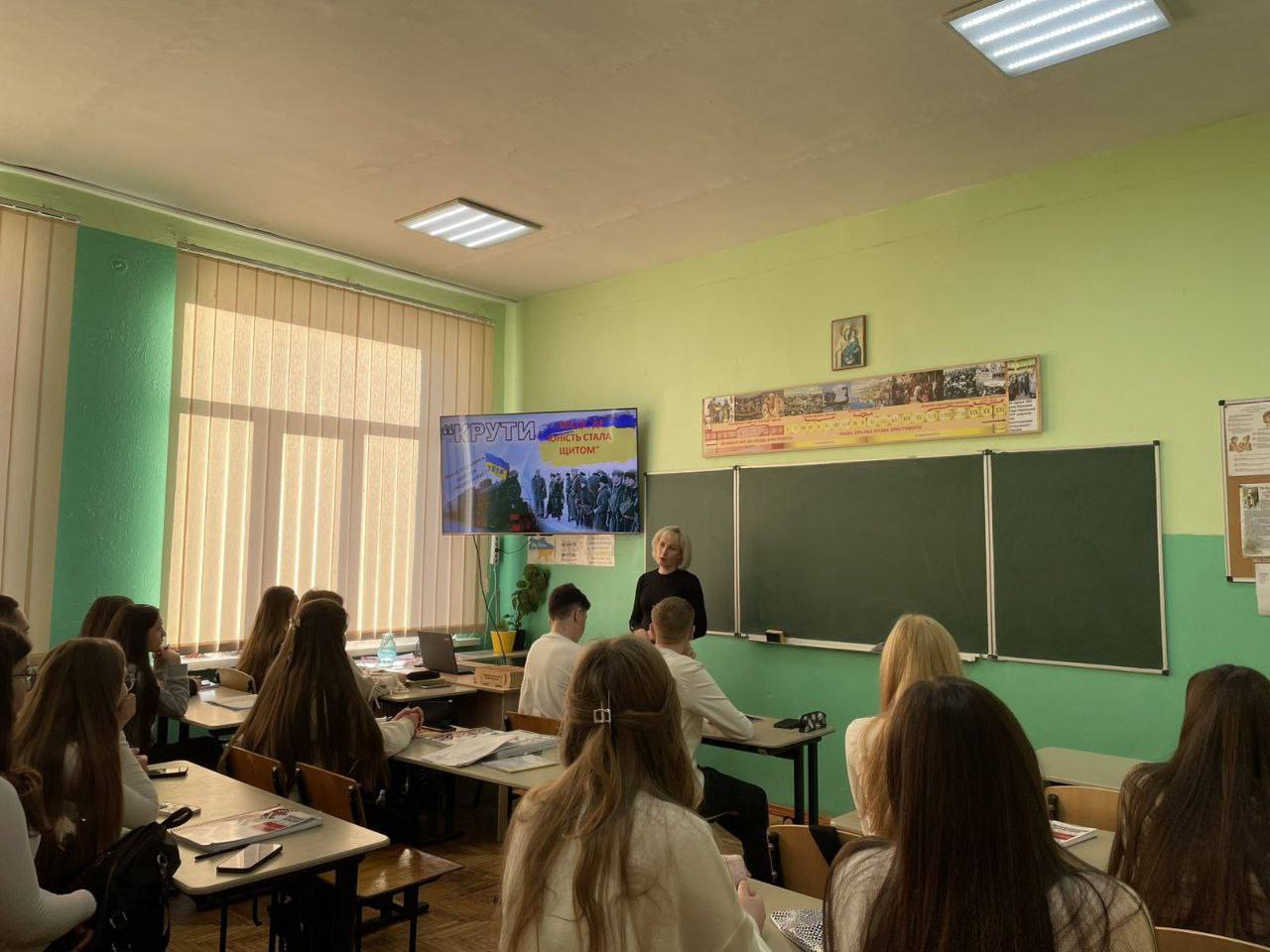 Сьогодні в стінах нашої школи відбулася Година пам’яті «Крути – місце, де юність стала щитом». У цей складний час День пам’яті Героїв Крут на тлі повномасштабної російсько-української війни набуває для кожного з нас ще глибшого та болючішого значення.