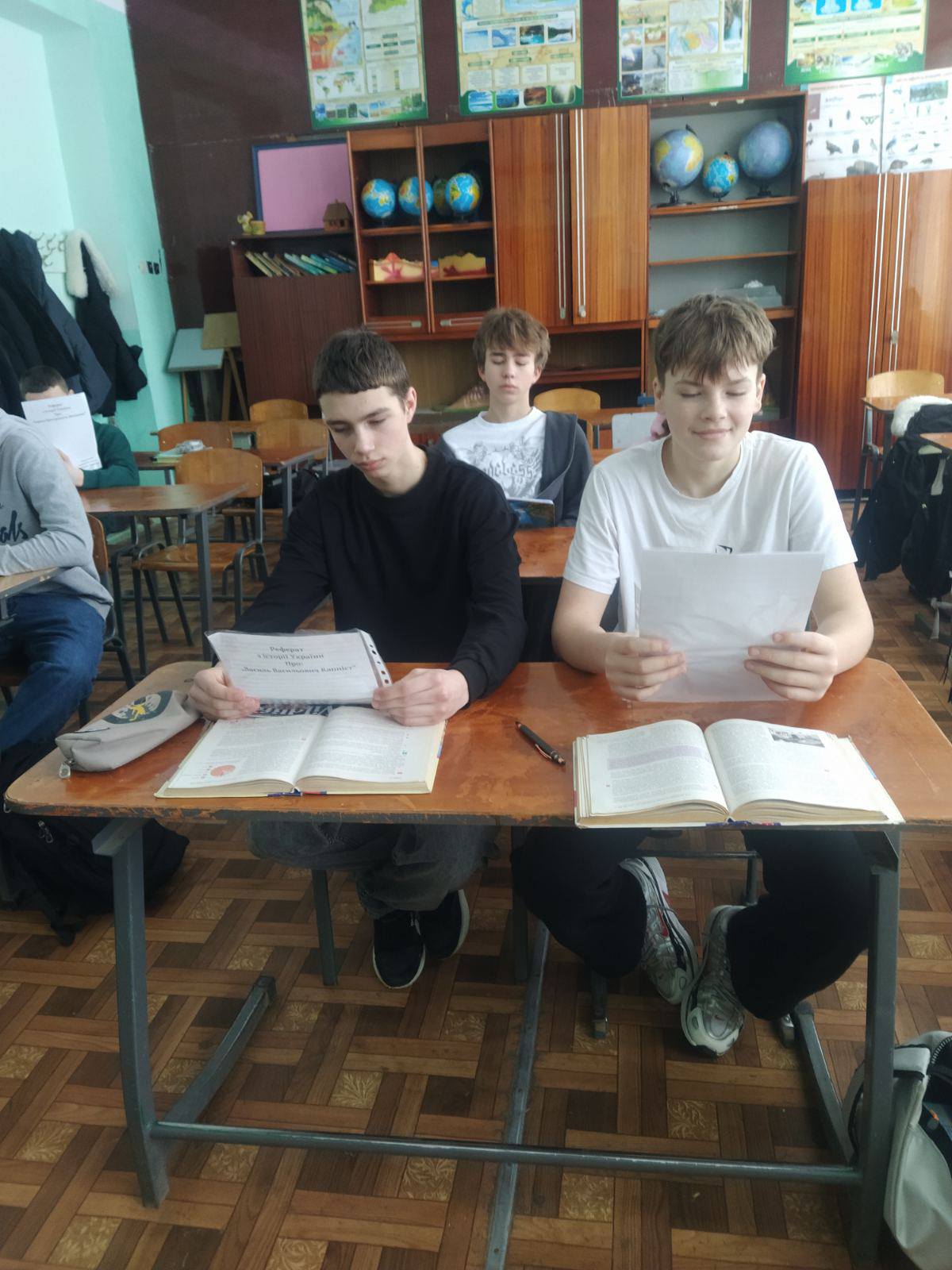 Сьогодні учні 9 класів на уроках історії (вчитель Кіселичник С. М.) стали учасниками цікавої дискусії про роль особистостей у національному відродженні України в першій половині XIX століття. У своїх проектах-дослідженнях вони звернули увагу на діячів «Руської трійці» і “Кирило-Мефодіївського братства”. Дев’ятикласники говорили про значення діяльності і творчості Т. Г. Шевченка, І. Котляревського, М. Максимовича і В. Каразіна.