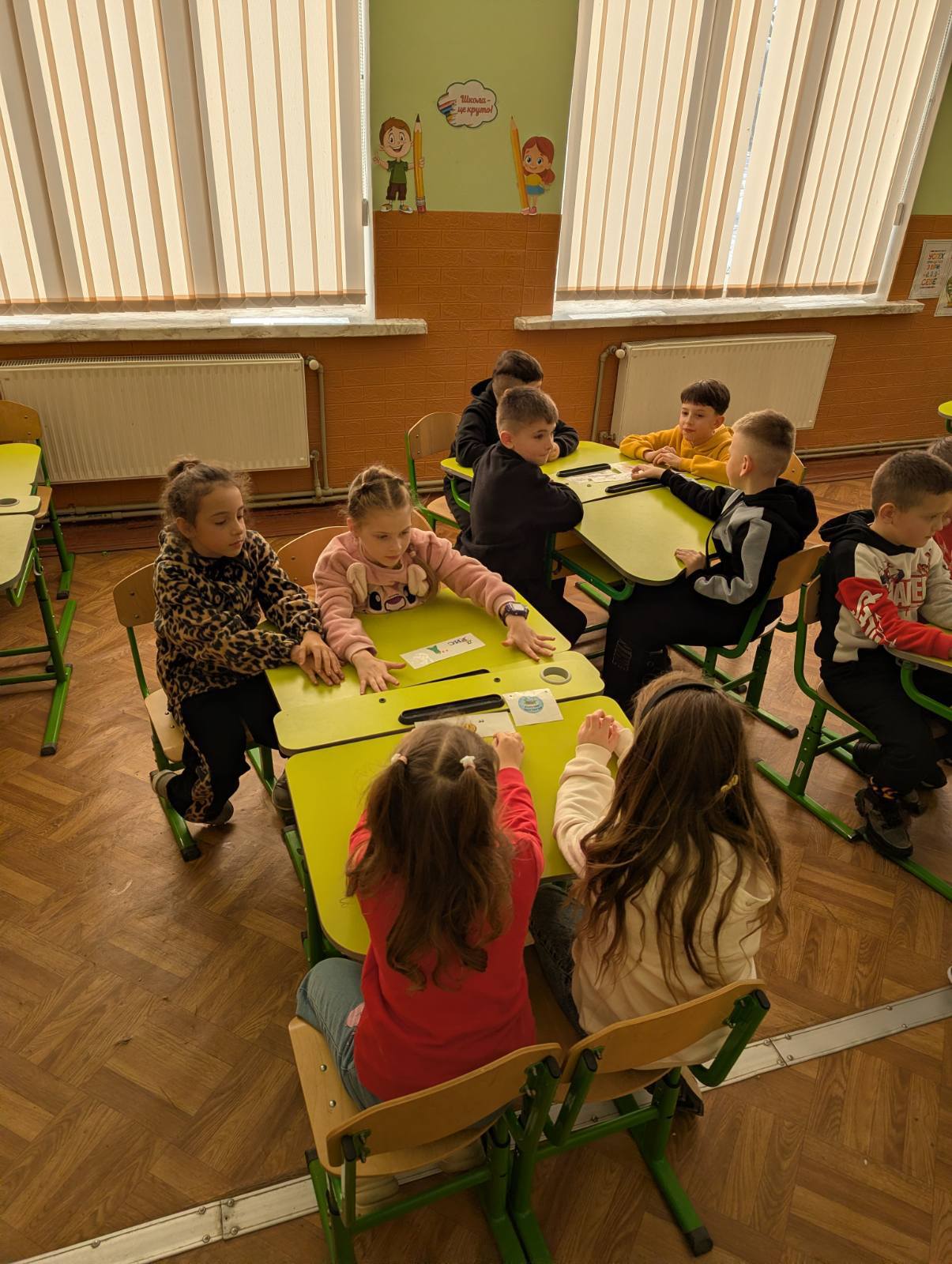Учні були поділені на команди ” Мишки – програмишки” та ” Веселі ноутбуки”. Команди з захопленням розгадували ребуси, розшифровувати слова, складали пазли, розв’язували логічні задачі. Між конкурсами звучали веселі руханки, під час яких діти мали змогу відпочити і потанцювати.
