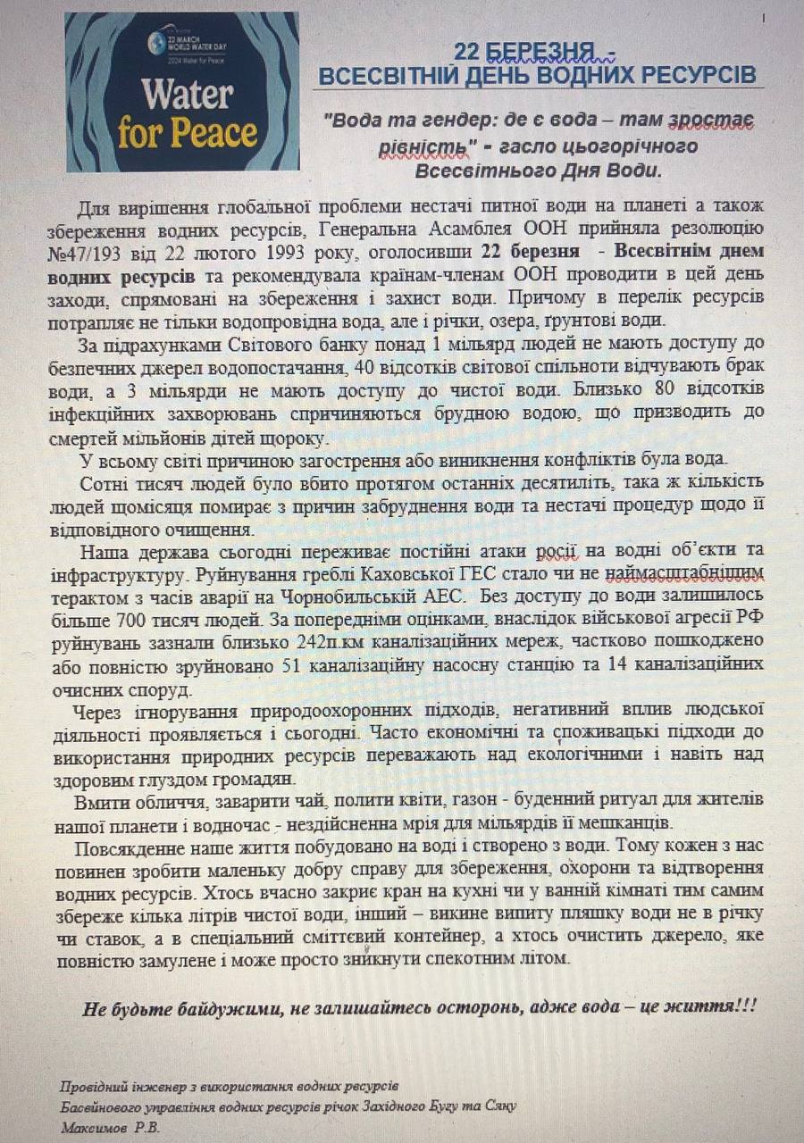 «Вода! Ти найбільше багатство у світі!» (А.де Сент-Екзюпері)