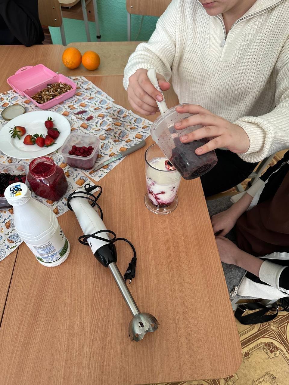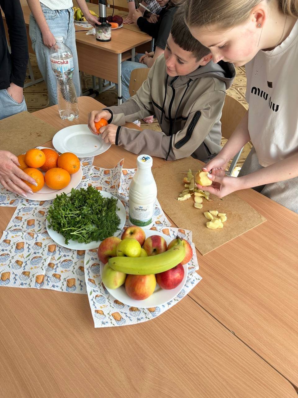 Учні стали справжніми фуд-чарівниками і створювали власноруч смачні та корисні смузі- джерело вітамінів, клітковини, мікроелементів, кальцію і білку, корисних жирів, енергії та свіжості.
